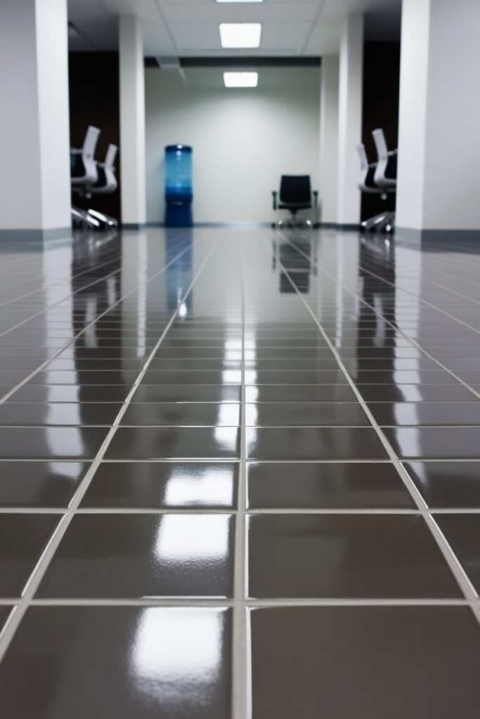 • Buffing for Maximum Shine: After applying the wax, we buff the floor to create a smooth, glossy finish that reflects light and improves the overall look of the area.